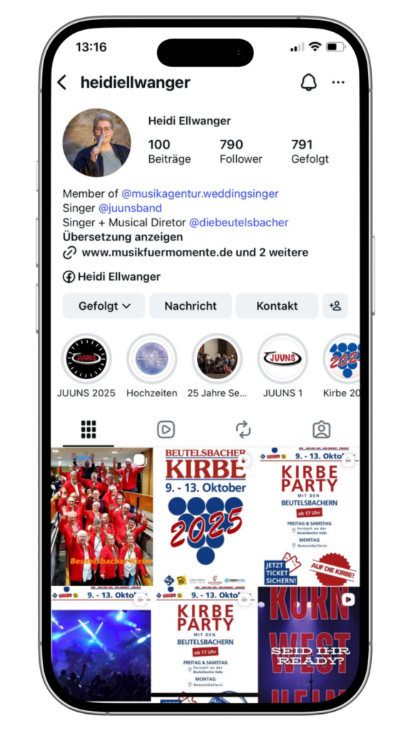 Gepostet auf Andreas GrathwohlTrustindex überprüft, ob die Originalquelle der Bewertung Google ist. Heidi hat unsere freie Trauung gesanglich begleitet – und das auf eine so wunderschöne und berührende Art, dass wir und unsere Gäste tief bewegt waren. Sie hat eine fantastische Stimme und versteht es, die Emotionen der Songs auf besondere Weise zu transportieren. Trotz der eher spontanen Buchung lief alles absolut professionell. Heidi hat eine große Auswahl an Songs im Repertoire und hat es sogar geschafft, innerhalb kürzester Zeit noch ein Wunschlied für uns einzustudieren – das hat uns sehr gefreut und beeindruckt. Auch beim Sektempfang hat sie für die perfekte musikalische Begleitung gesorgt: mit einem tollen Gespür für die Stimmung, einer passenden Songauswahl und einer angenehm zurückhaltenden Präsenz im Hintergrund. Rundum war alles perfekt – musikalisch wie menschlich. Liebe Heidi, danke für deine wunderbare Begleitung an unserem Tag! Wir können dich von Herzen weiterempfehlen – nicht nur für Hochzeiten, sondern für jedes besondere Event. Nici & AndyGepostet auf IngeTrustindex überprüft, ob die Originalquelle der Bewertung Google ist. Ich hatte das große Vergnügen, Heidi live zu erleben – und ich muss sagen: Ich war absolut begeistert! Schon bei den ersten Tönen hatte ich Gänsehaut. Ihre Stimme ist nicht nur kraftvoll und klar, sondern transportiert auch unglaublich viel Gefühl. Ob romantische Ballade während der Trauung oder ein schwungvoller Song beim Sektempfang – Heidi trifft genau den richtigen Ton und sorgt für unvergessliche Momente. Man hat richtig gespürt, wie sehr sie mit Herz und Seele dabei ist.Gepostet auf Elena RTrustindex überprüft, ob die Originalquelle der Bewertung Google ist. Heidi ist eine wundervolle Sängerin!! Am 24.05.25 durfte Heidi unsere Trauung begleiten. Mein Mann musste sogar schon während dem Soundcheck weinen als Heidi mein Einlaufslied geübt hat :) Wir waren rundum mehr als zufrieden. Vorher haben wir uns immer wieder ausgetauscht. Wir durften unsere Wünsche äußern, haben Tipps bekommen und konnten den gesamten Ablauf nach unseren Wünschen gestalten. Heidi war die ganze Zeit super engagiert und hat sogar unbekannte Songs extra für uns einstudiert und uns mit sneak peaks auf dem laufenden gehalten. Wir haben tausend Dank dass du dabei warst und diesen Moment zu etwas ganz besonderem gemacht hast!Gepostet auf Sven HeineTrustindex überprüft, ob die Originalquelle der Bewertung Google ist. Heidi singt in einer Band mit mir zusammen. Sie hat nicht nur eine authentische, ehrliche und vor allem sehr vielseitige Stimme sondern auch ein enormes Maß an Professionalität, Bühnenerfahrung jeglicher Art sowie ganz viel Herzlichkeit in ihrem Auftreten und in der Art, auf Menschen zuzugehen und diese mit ihrer Musik zu berühren. Genau das hat sie auch auf meiner Hochzeit getan - damals als Überraschungs-Act. Wenn auch Ihr „Musik für Momente“ auf Eurem Event oder Eurer Hochzeit sucht, kann ich Euch Heidi nur wärmstens empfehlen. 👏🏼Gepostet auf Sarah R.Trustindex überprüft, ob die Originalquelle der Bewertung Google ist. Heidi hat unsere Hochzeit den ganzen Tag musikalisch begleitet. Sie hat eine wunderschöne Stimme und eine tolle Persönlichkeit. Wir können sie von Herzen weiterempfehlen!Gepostet auf KKLBTrustindex überprüft, ob die Originalquelle der Bewertung Google ist. Wir haben Heidi Ellwanger für unsere Weihnachtsfeier genucht – und was sollen wir sagen? Es war ein voller Erfolg! Ihre Live-Auftritte waren absolut großartig: mitreißend, gefühlvoll und professionell zugleich. Sie hat mit ihrer Stimme sofort die Herzen der Gäste erobert und für eine ganz besondere Atmosphäre gesorgt. Das Highlight des Abends war definitiv das Karaoke – Heidi hat nicht nur gesungen, sondern auch charmant durch das Programm geführt, die Gäste motiviert und alle mit ihrer offenen und herzlichen Art begeistert. Selbst diejenigen, die anfangs etwas schüchtern waren, haben sich irgendwann ans Mikro getraut. Es wurde gelacht, gesungen und getanzt – genau so, wie man sich eine gelungene Weihnachtsfeier vorstellt! Vielen lieben Dank, liebe Heidi, für deinen wunderbaren Beitrag zu diesem unvergesslichen Abend. Du unsere Feier zu etwas ganz Besonderem gemacht. Wir würden dich jederzeit wieder buchen und können dich von Herzen weiterempfehlen!Gepostet auf Margot HerzogTrustindex überprüft, ob die Originalquelle der Bewertung Google ist. Heidi ist eine meega Sängerin und eine wunderbare fröhliche frau. Sie singt mit Liebe und Leidenschaft. Jederzeit buchen wie sie wiederGepostet auf Kaddi HeineTrustindex überprüft, ob die Originalquelle der Bewertung Google ist. Heidi hat eine unglaublich schöne Stimme, die richtig ins Herz geht. Ich durfte sie schon ganz oft live hören. Ich kann sie nur von Herzen weiterempfehlen.